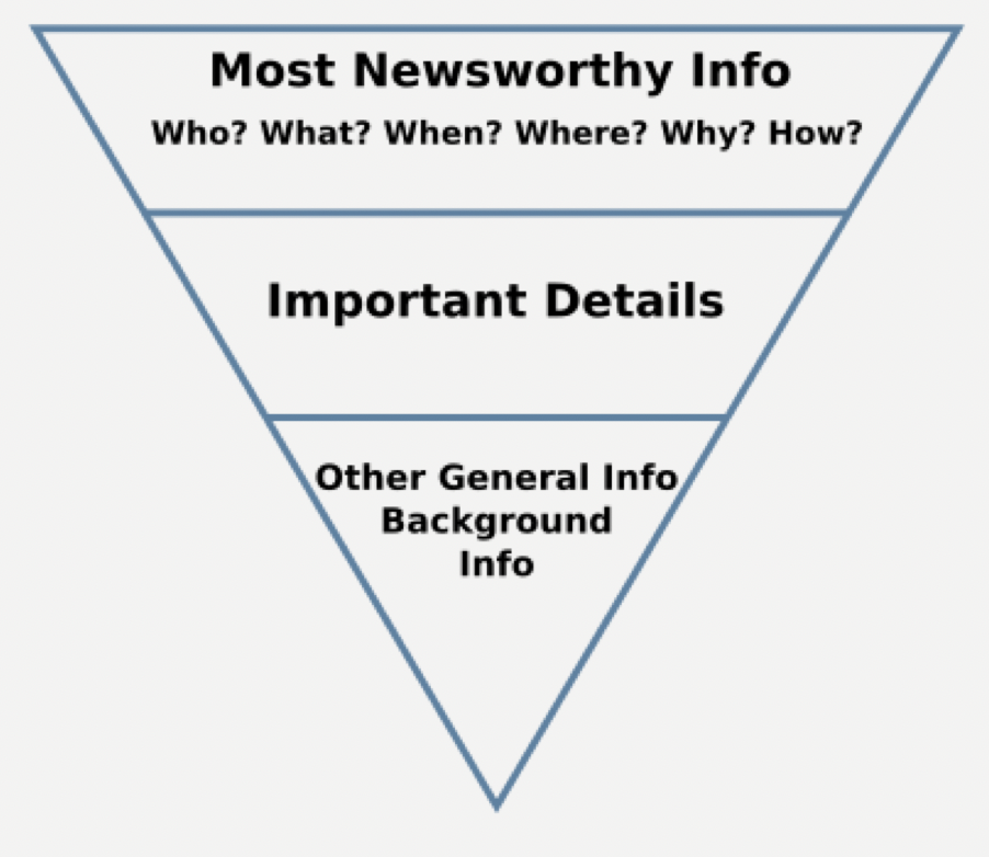This news style can be represented by an upside-down (or inverted) pyramid: